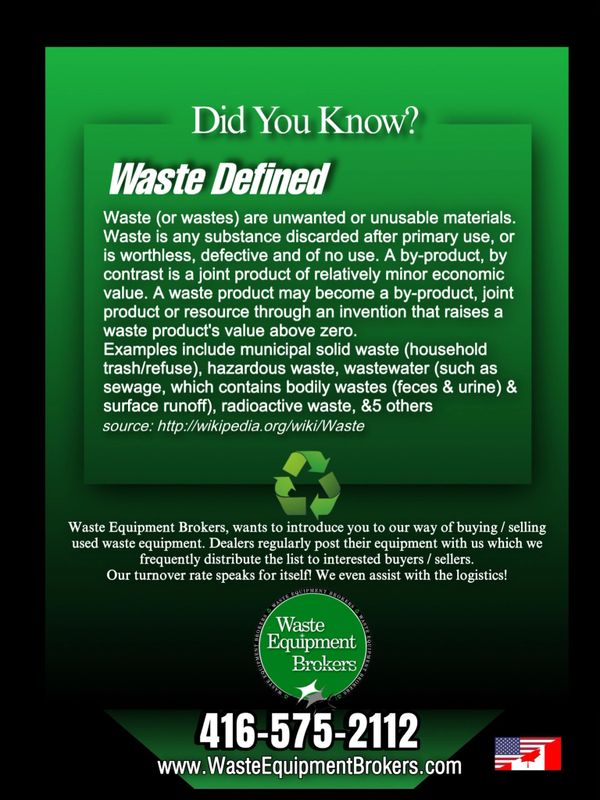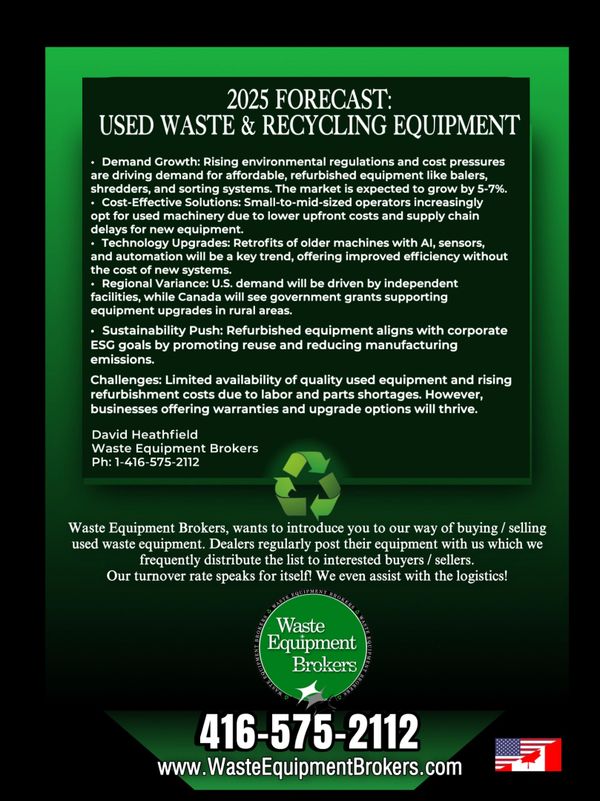 Waste / Recycling equipment is currently in high demand and timing is everything. ...that's where we come in!