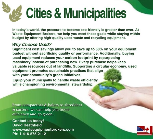 At Waste Equipment Brokers, we support sustainable solutions for our environment as applicable the waste management and recycling equipment industry. We promote the reuse / resale of used waste / recycling equipment which contributes to a more meaningful sustainable solution to our environment. Every day we make choices in our lives that affect the environment, the climate and other species. There's a lot we can do to reduce our environmental footprint. Our individual actions matter — but we can’t do it alone.